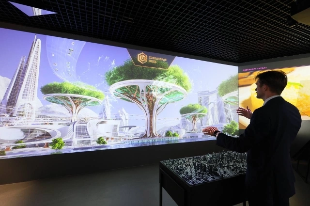 Главная особенность экспозиции — интерактивность. Посетители сами управляют путешествием по миру будущего: движениями рук перелистывают сцены, переходят между сюжетами и оживляют их.