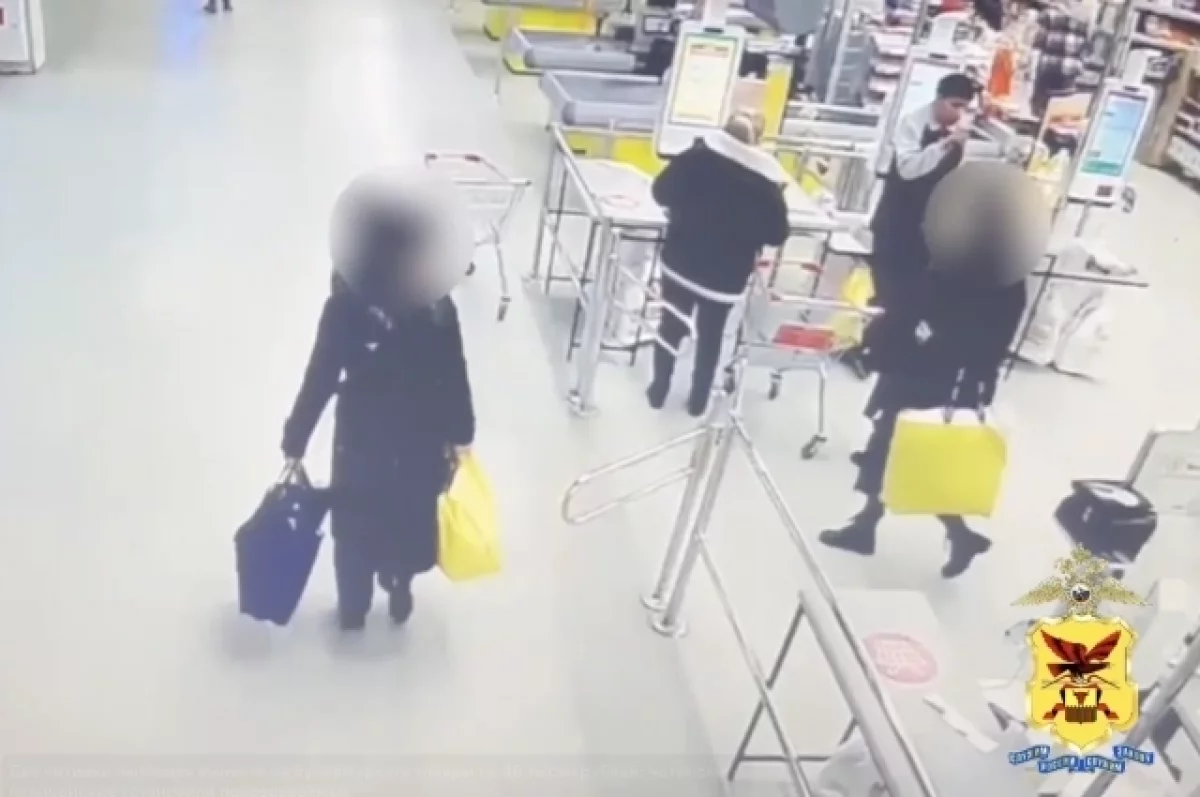 После просмотра записей с камер видеонаблюдения стало понятно, что злоумышленницы целенаправленно набрали разнoродный товар: продукты, предметы одежды и косметику, а также упаковали в принесeнные с собой пакeты.
